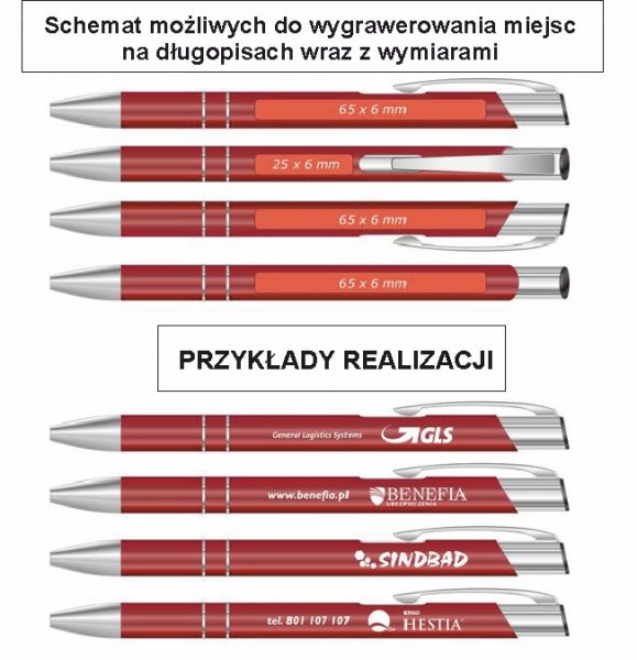 500 szt. Metalowych długopisów z grawerem.