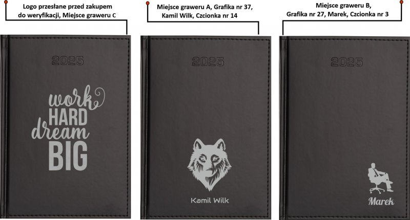 * Kolor graweru zależy od samej oprawy kalendarza i nie mamy na niego wpływu.