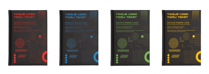 * Kalendarze z kolorowym grawerem są dostępne w 4 wariantach jak powyżej na zdjęciu. Wszystkie kalendarze są tylko i wyłącznie z okładką czarną, gdzie grawer wychodzi w kolorze żółtym, czerwonym, zielonym lub niebieskim.