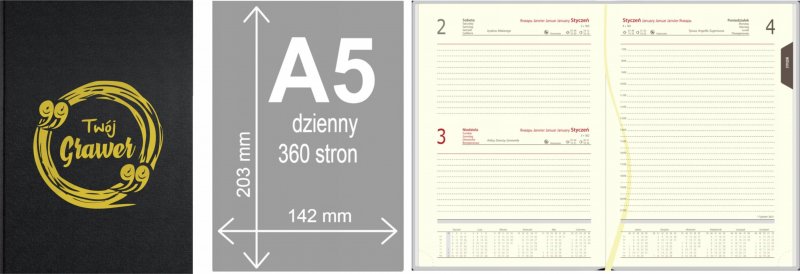 * Kolor graweru zależy od samej oprawy kalendarza i nie mamy na niego wpływu.